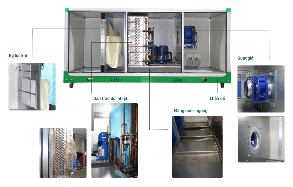 Cấu tạo AHU tiêu chuẩn gồm có: